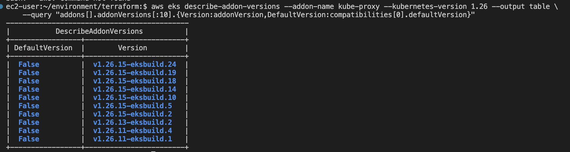 aws eks update-cluster-version --region ${AWS_REGION} --name $EKS_CLUSTER_NAME --kubernetes-version 1.26