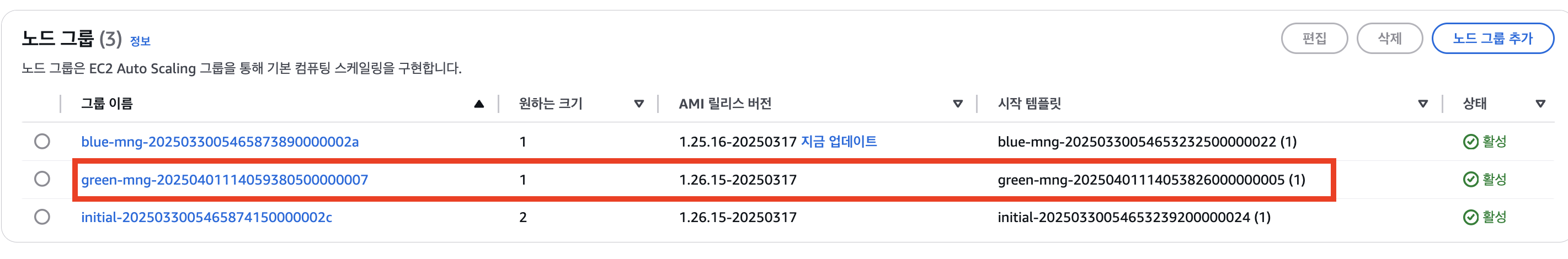 위의 코드대로 blue managed node group과 같은 green managed node group을 추가합니다.