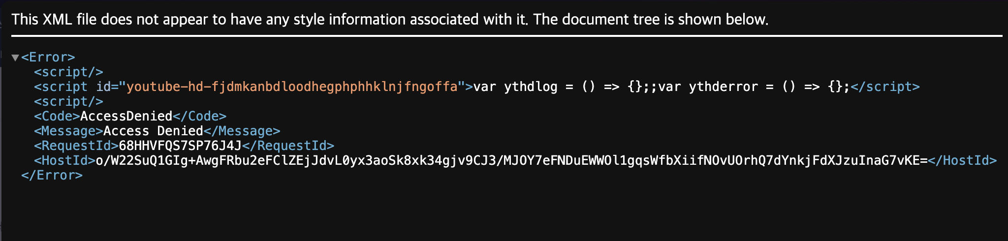 처음엔 해당 AWS S3 Bucket에 get 권한이 없나? 싶어서 해당 권한을 설정해주었는데도 해당 문제가 지속되었습니다.
