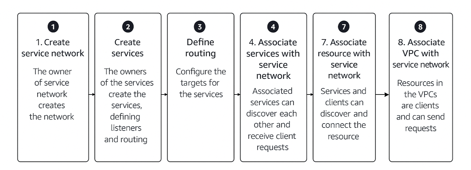 특히 네트워크 액세스, 트래픽 관리, 모니터링에 대한 일관된 정책을 정의하여 EC2 인스턴스, EKS 컨테이너, Lambda 서버리스 함수 등 다양한 컴퓨팅 서비스 간에 간단하고 표준화된 연결 방식을 제공합니다.