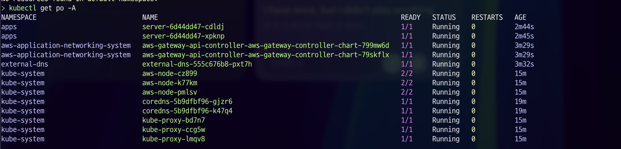kubectl get po -A