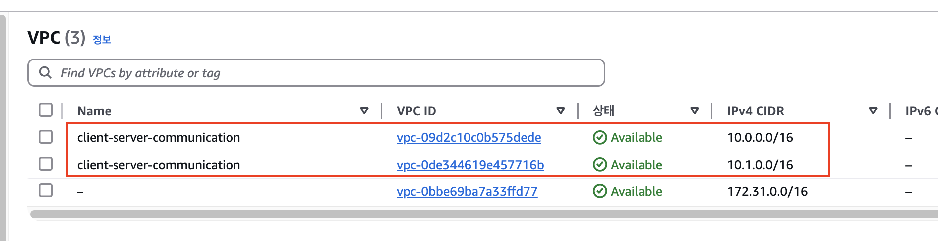10.0.0.0/16의 CIDR이 할당된 Client-VPC와 10.1.0.0/16의 CIDR가 할당된 Cluster VPC가 배포된 것을 확인하실 수 있습니다.