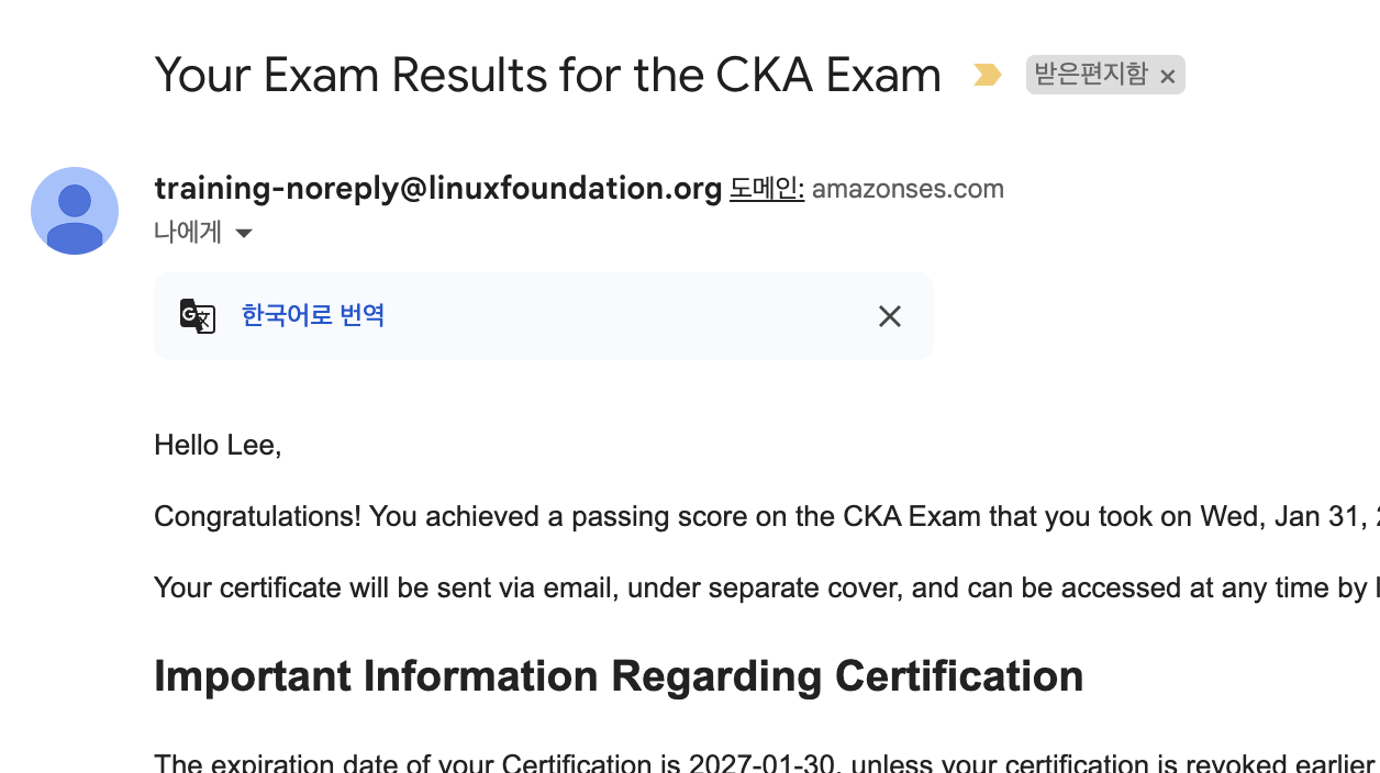 - Your Exam Results for the CKA Exam