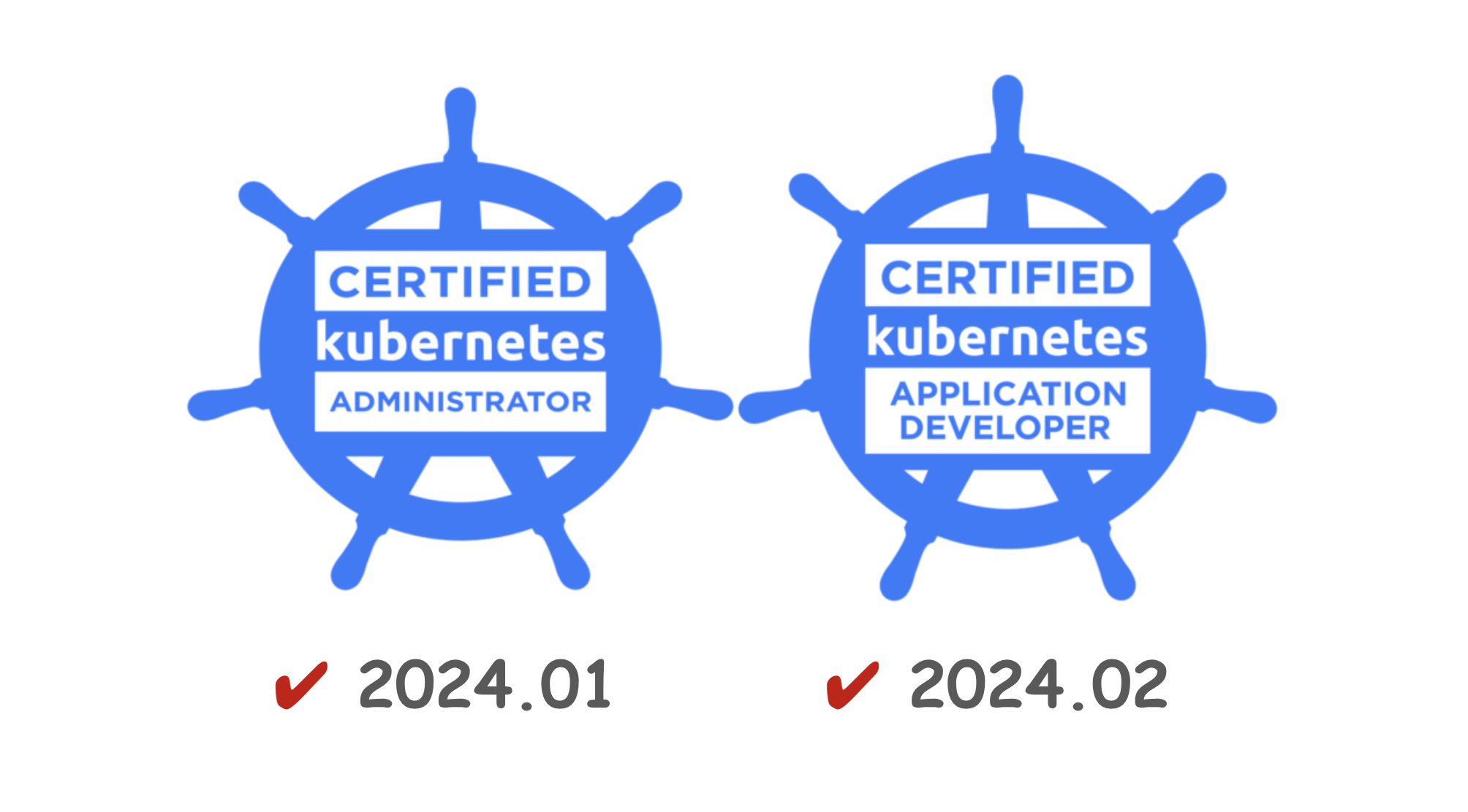 사내에서 Kubernetes를 도입하기 위해 공부하던 찰나 쿠버네티스 관련 자격증이 있다는 것을 알게 되었습니다. 하지만 당시에 자격증 취득을 위한 공부보단 하루 빨리 실무에 적용하기 급급했던터라 수박겉핥기 식으로 공부를 했었습니다. 그렇게 오직 이론보단 실무를 위하여 Kubernetes를 도입하여 운영했었고, 어느정도 시간이 지남에 따라 안정화가 되어 자격증을 공부를 하기 시작했습니다. (시기로 보자면 23년 11월부터 준비를 했네요.) 23년 12월에 2번의 시험을 본 후 연달아 불합격했고 24년 1월에 한 번 더 결제를 하여 2번을 보아 합격했습니다!(총 4번을 보았네요…) 그리고 바로 2주 뒤 45% 설날 세일때 이때다 싶어 CKAD까지 1번의 불합격에 이어 결국 합격을 했습니다..! (저만큼 불합격 받은 사람 없을 겁니다… 🤣🤣) 눈물겨운 시도끝에 포기하지 않는 마음으로 2024년에 계획했던 첫 목표를 이룰 수 있었습니다!