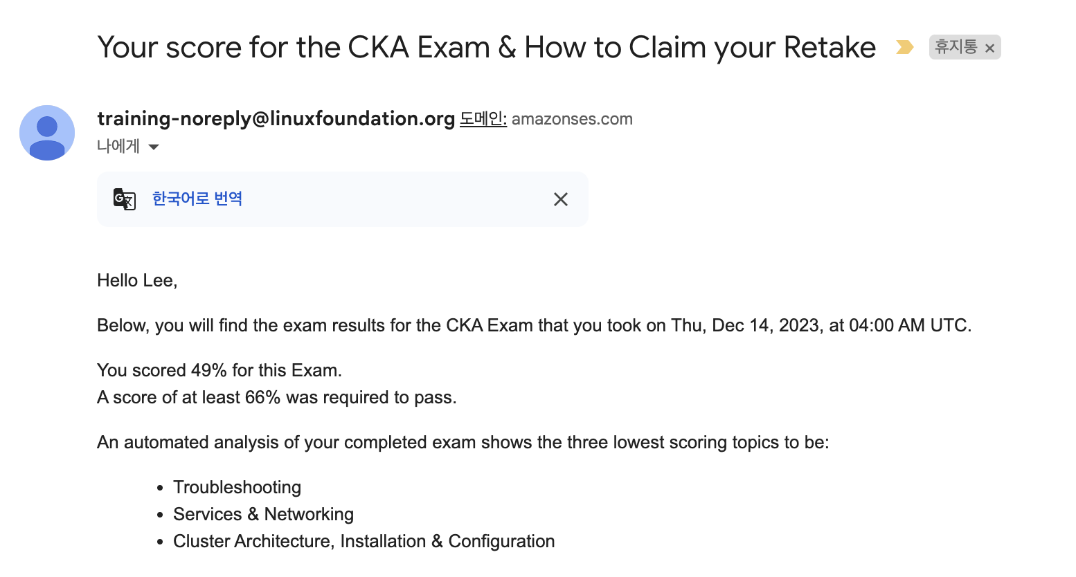 - Your score for the CKA Exam & How to Claim your Retake