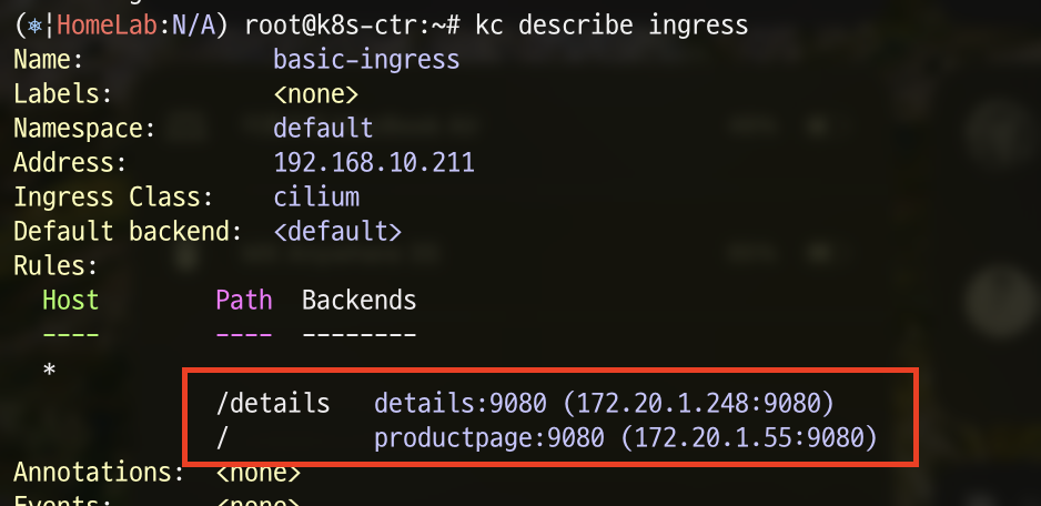 라우팅 경로를 확인해보기 위해 ingress를 자세히 살펴보겠습니다.