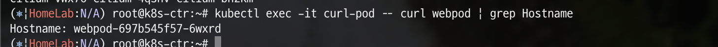 kubectl exec -it curl-pod -- curl webpod | grep Hostname