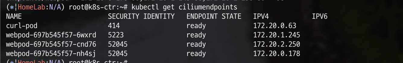 현재 배포되어 있는 pod을 확인해보면 172.20.0.63은 curl-pod이고, 요청을 받은 172.20.2.250은 k8s-w0에 배포되어 있는 webpod인 것을 확인할 수 있습니다.