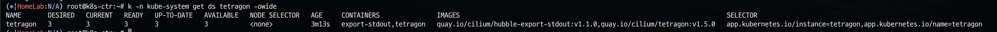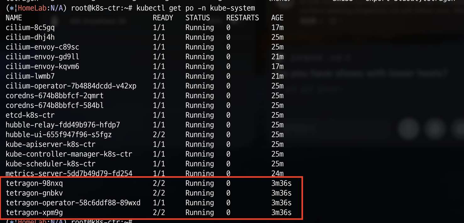 tetragon은 daemonset으로 배포되기 때문에 kube-system namespace의 daemonset을 확인해보겠습니다.