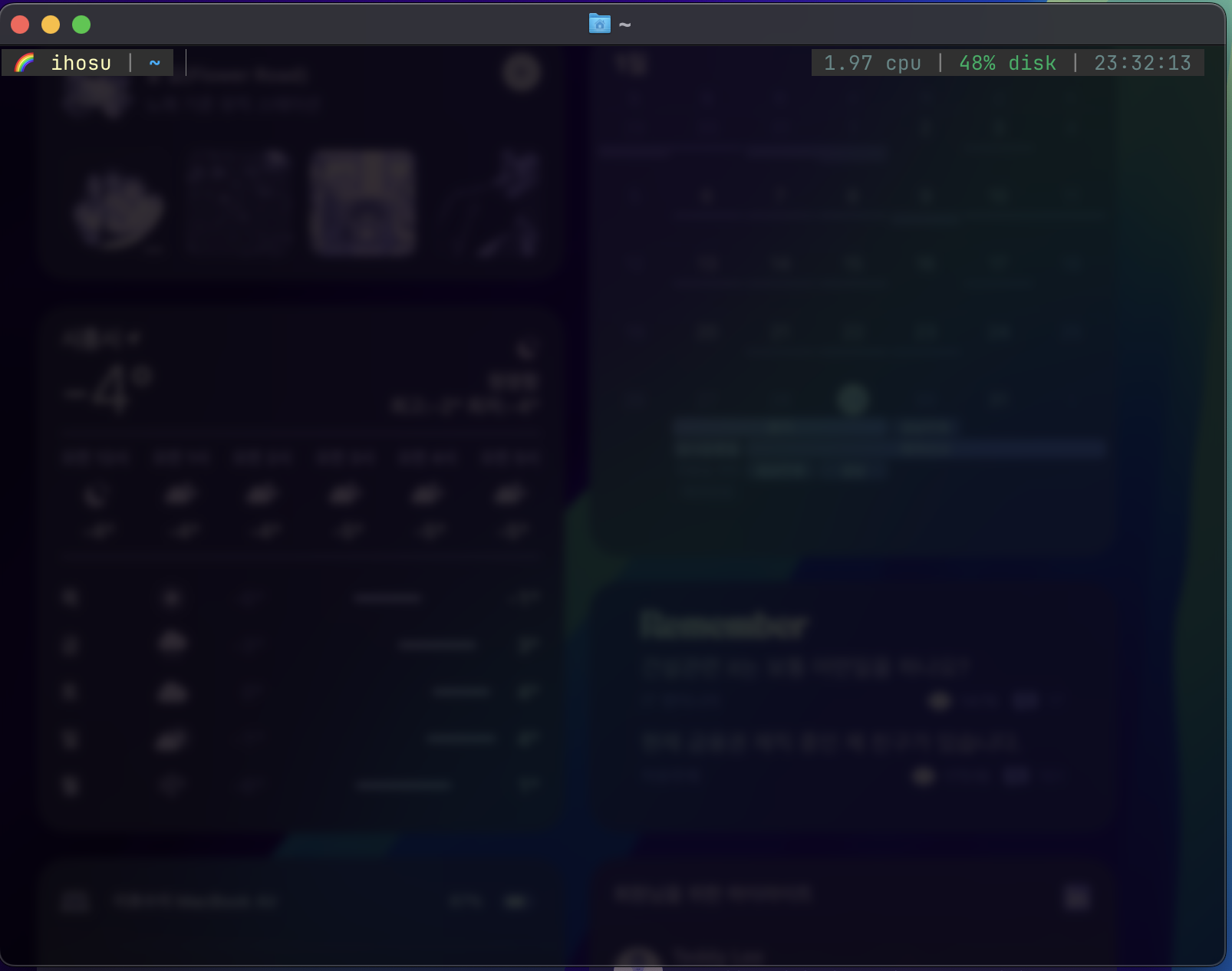 저는 살짝 투명하게 하는 것이 좋아서 background-opacity 와 background-blur-radius 설정을 해주었습니다!