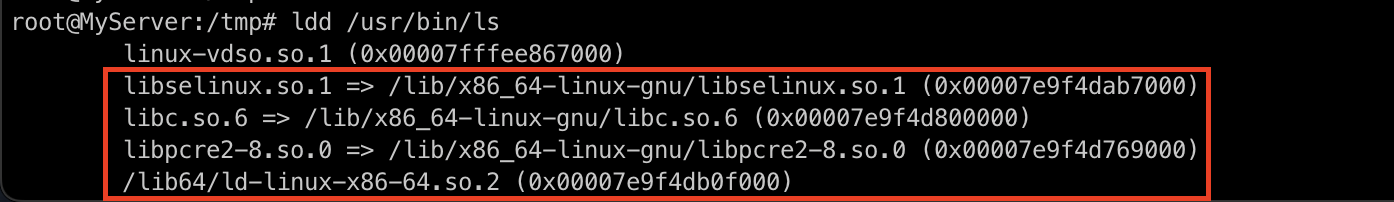 ldd /usr/bin/ls