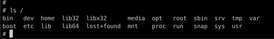 탈옥 파일을 실행한 후 ls 명령어를 통해 /(root) 경로를 확인해보면 위와 같이 host에서 root 경로를 조회했을 때와 같은 파일목록을 확인하실 수 있습니다.