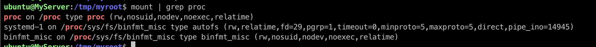 다시 chroot로 접근한 쉘에서 mount 명령어를 통해 /proc를 mount 해줍니다.