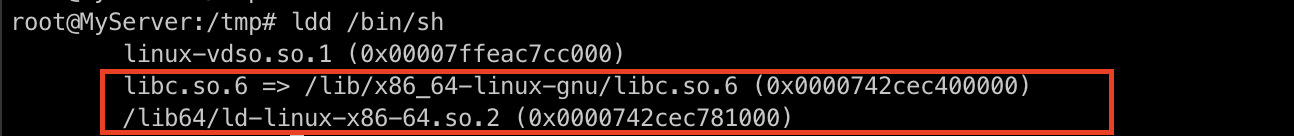 의존성을 맺고 있는 것들을 통채로 옮겨줘야 작동하기에 ldd 명령어를 통해 sh는 어떤 의존성을 갖고 있는지 확인해보겠습니다.