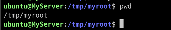 chroot명령어는 chroot에 신규로 root로 인식하게 할 Directory를 뒤에 붙여주고 실행할 shell을 넣어줍니다. 즉, myroot 디렉터리를 새로운 루트 디렉터리로 설정한 후 그 환경에서 셸을 실행하는 명령어입니다.
