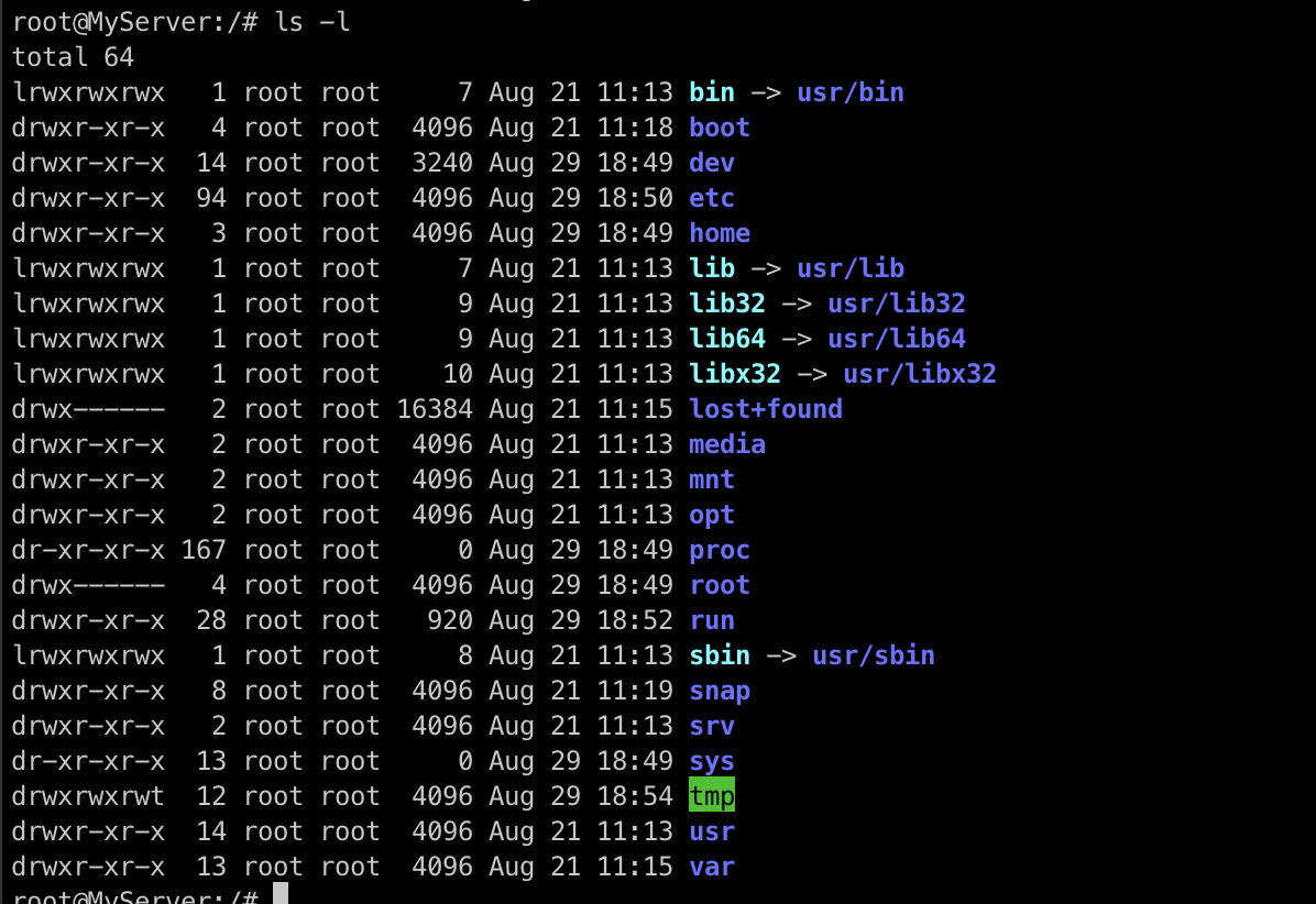 ls 명령어를 통해 /경로의 파일들을 조회해보고, cd로 상위 디렉토리로 이동한 후 다시 ls로 확인해보겠습니다.