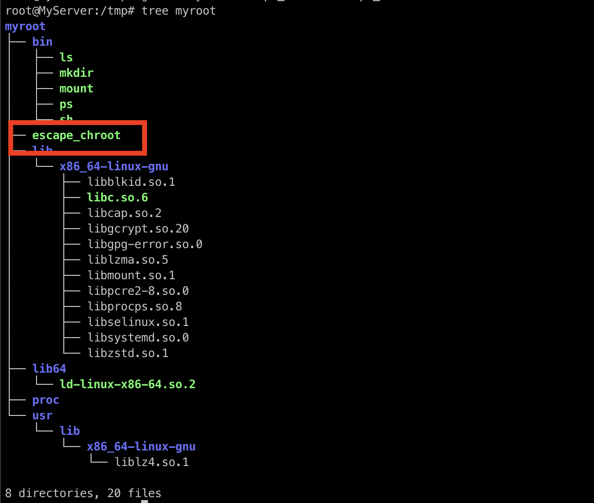 gcc -o myroot/escape_chroot escape_chroot.c