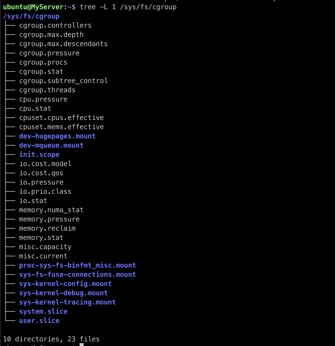 tree -L 1 /sys/fs/cgroup