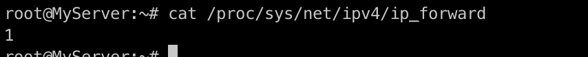 추가로 ip_forward가 되는지 확인하기 위해 위의 명령어를 실행합니다.  이때,  0은 off(불가능), 1은 on(가능)을 의미합니다.
