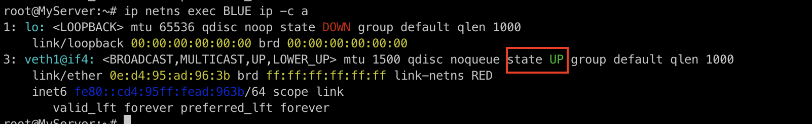 마찬가지로 BLUE Network Namespace에 veth1을 할당하겠습니다.