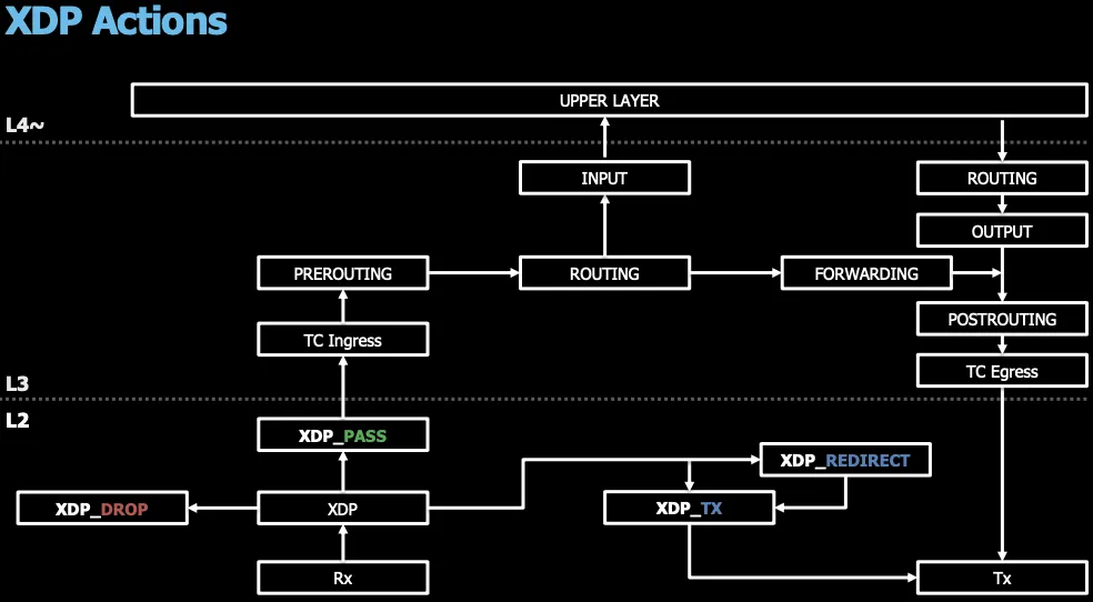 XDP도 Iptables처럼 규칙이 존재하는데, netfilter이상의 계층에서 차단된다면 iptables rule같은 경로를 한번 더 거치게 되는것이니 속도가 느리게 됩니다.