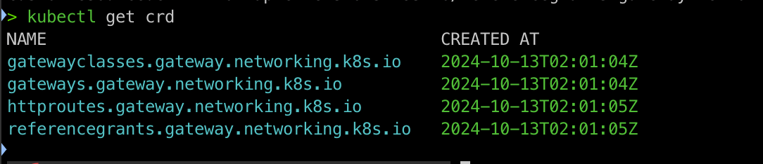 kubectl apply -f https://github.com/kubernetes-sigs/gateway-api/releases/download/v1.0.0/standard-install.yaml