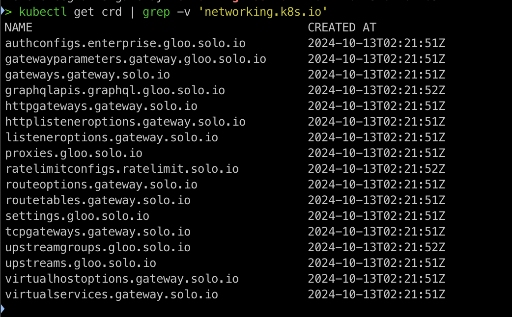 kubectl get crd | grep -v 'networking.k8s.io'