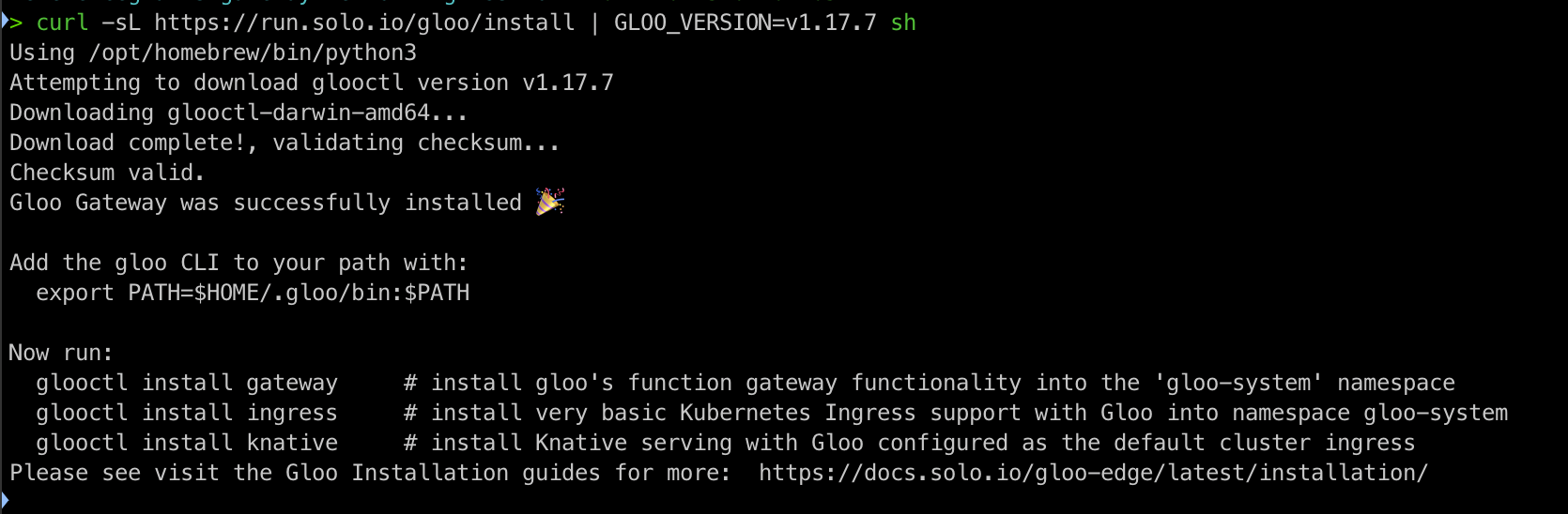 curl -sL https://run.solo.io/gloo/install | GLOO_VERSION=v1.17.7 sh