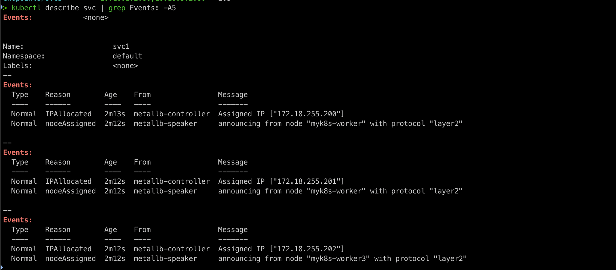 해당 Service의 External IP에 리더 Speaker Pod가 어떤 노드에 있는지 확인