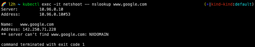 1. google.com.default.svc.cluster.local. -> 질의 실패