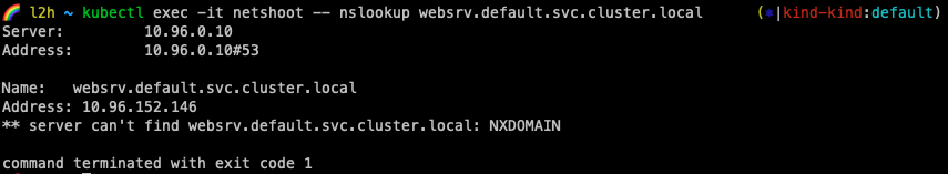 1. websrv.default.default.svc.cluster.local. -> 질의 실패