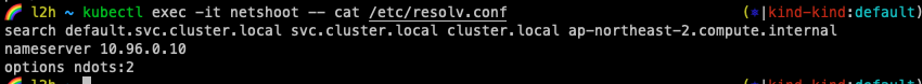 Kubernetes에서는 기본적으로 ndots 은5로 설정되며, DNS 이름에 점이 5개 이상 포함되어 있으면 FQDN으로 간주하고, 검색 도메인(search domain)을 붙이지 않습니다.