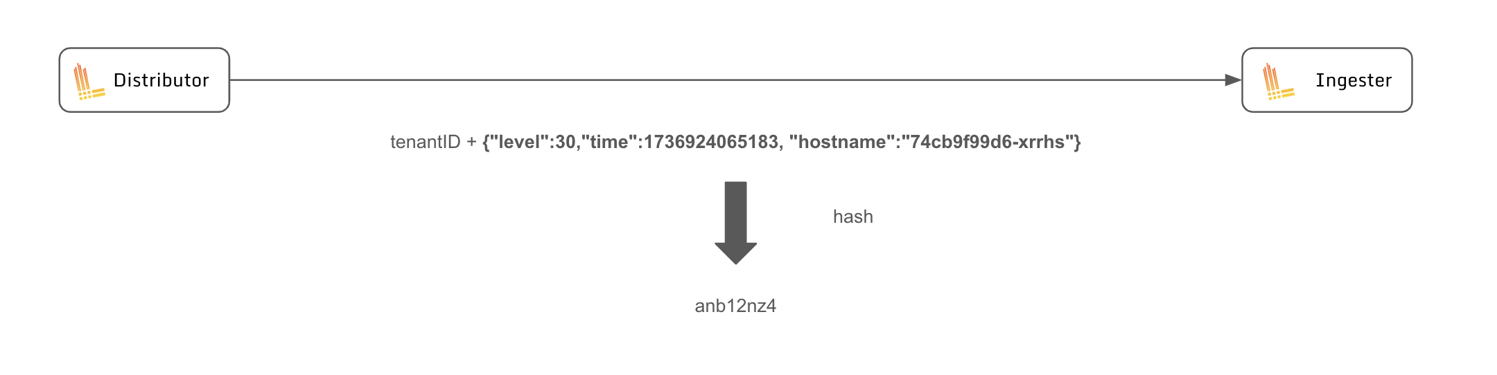 그렇게 distributor는 stream마다 고유의 hash를 부여한 후 chunks로 저장하기 위해 ingester에 전달합니다.