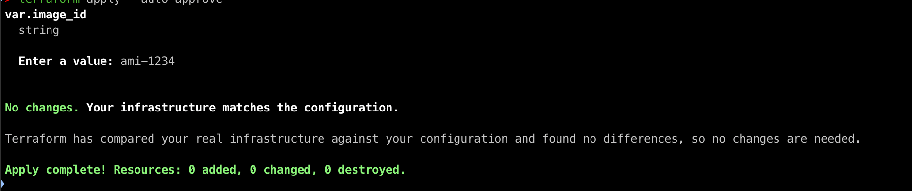 ami-1234로 입력하게되면 길이가 4개 초과해야한다는 validation과 [ami-]를 포함해야 한다는 validation을 모두 통과하여 정상적으로 apply 되는 것을 확인하실 수 있습니다.