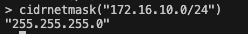 cidrnetmask 내장 함수는 CIDR 표기법으로 주어진 IPv4 주소를 서브넷 마스크 주소로 변환하는 함수입니다.