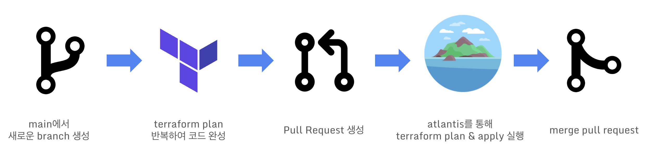 atlantis는 대표적인 Terraform Runner로서, GitHub, GitLab, Bitbucket과 같은 Git 저장소와 통합되어 PR(풀 리퀘스트) 기반의 워크플로우를 통해 Terraform 변경 사항을 자동으로 검토하고 적용할 수 있게 해주는 도구입니다.