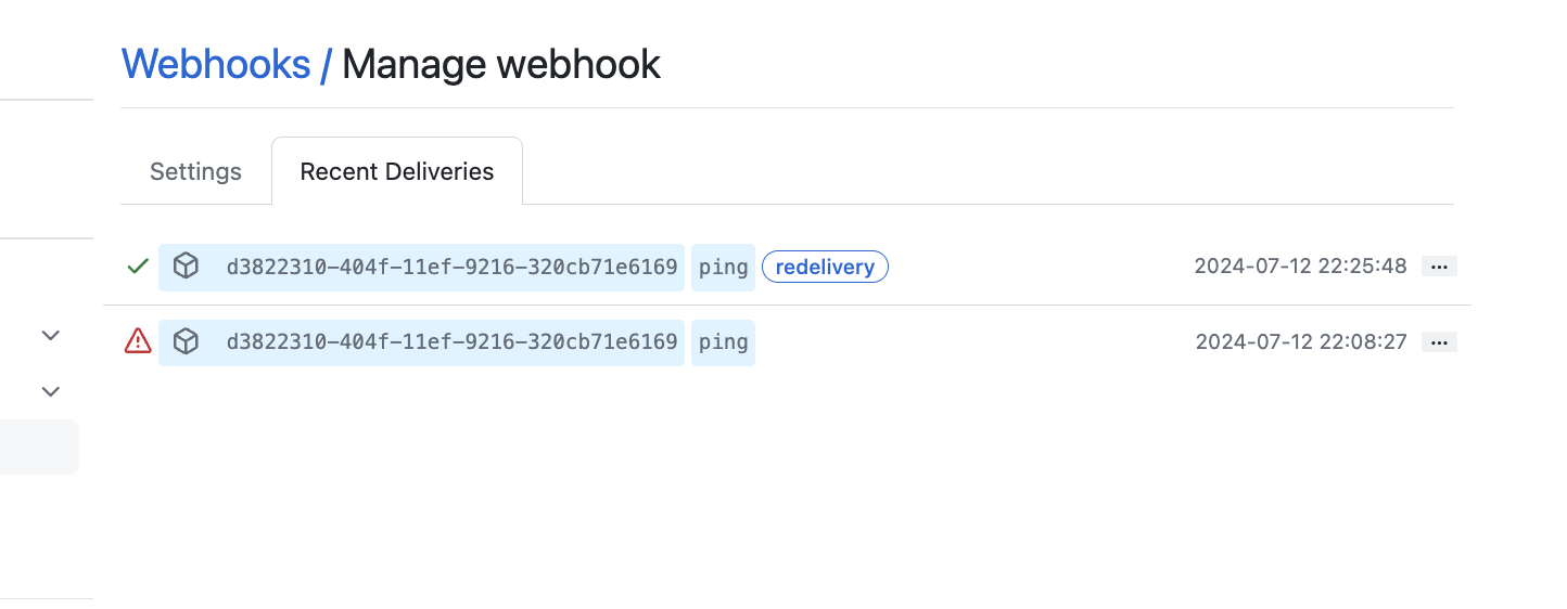 위에서 Atlantis Server가 배포되어 있지 않았으니 webhook ping test가 실패했었는데요. Atlantis Server를 배포한 후 다시 test를 진행해보면 위의 사진과 같이 check 표시와 함께 ping test가 성공했음을 확인할 수 있습니다.