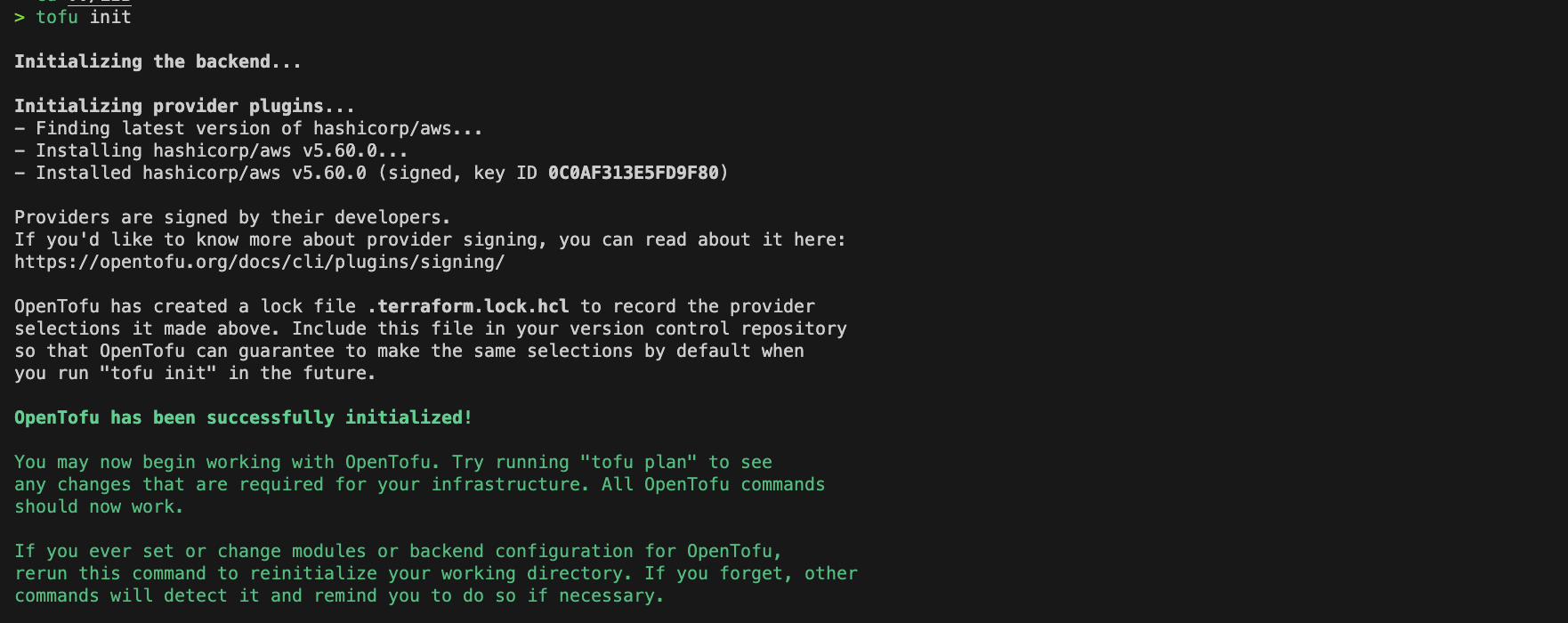 OpenTofu는 기존 인프라와 구성에 따라 생성, 업데이트 또는 파괴할 인프라를 설명하는 실행 계획을 만듭니다.