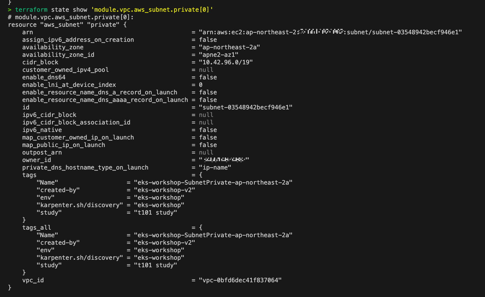 terraform state show 'module.vpc.aws_subnet.private[0]'