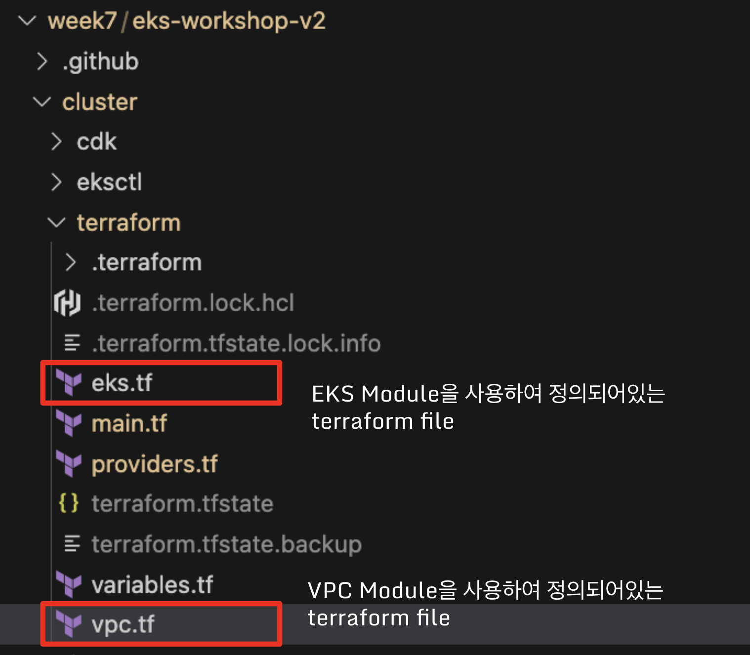 각각 tf 파일을 한번 확인해보시면 간략하게 딱 필요한 resource만 사용하는 것을 확인하실 수 있습니다.