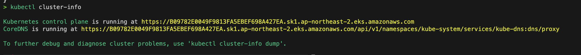 위에서 실패했던 cluster-info 명령을 다시 실행해보겠습니다.