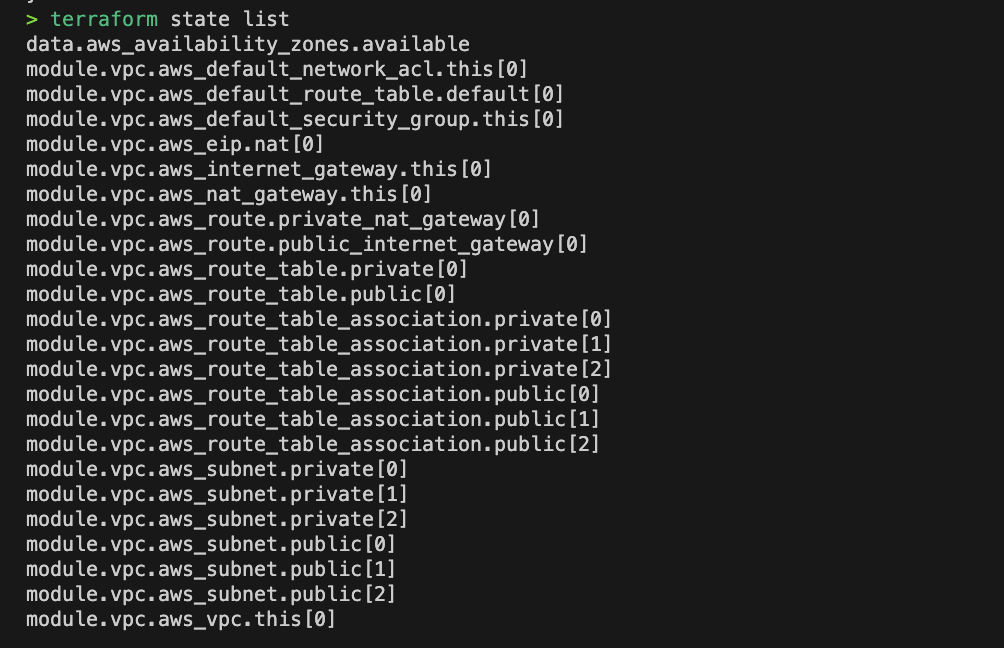 terraform state list
