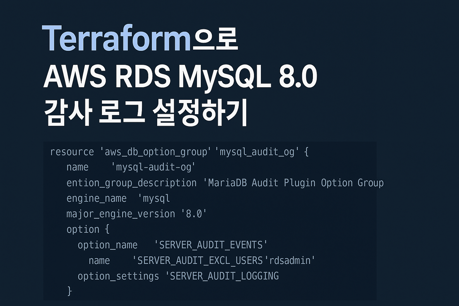 기본적으로 terraform으로 AWS RDS의 MySQL을 구성했다면, 아래와 같이 감시 로그(audit_log)를 설정합니다.