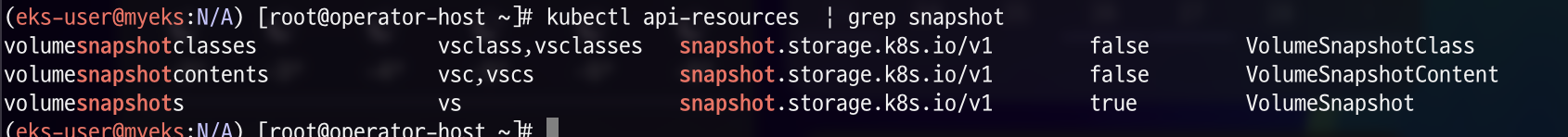 이제 snapshot 관련 api를 사용할 수 있는지 위 명령어를 통해 api resources를 조회해 보겠습니다.