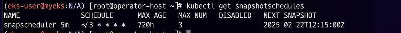 생성된 snapscheduler를 확인해 보겠습니다.