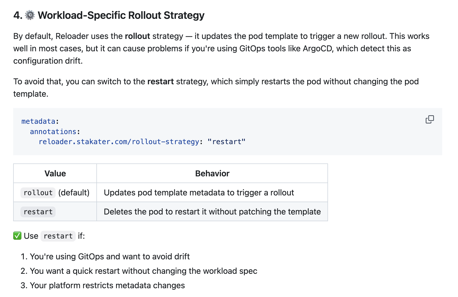 reloader.stakater.com/rollout-strategy: "restart"