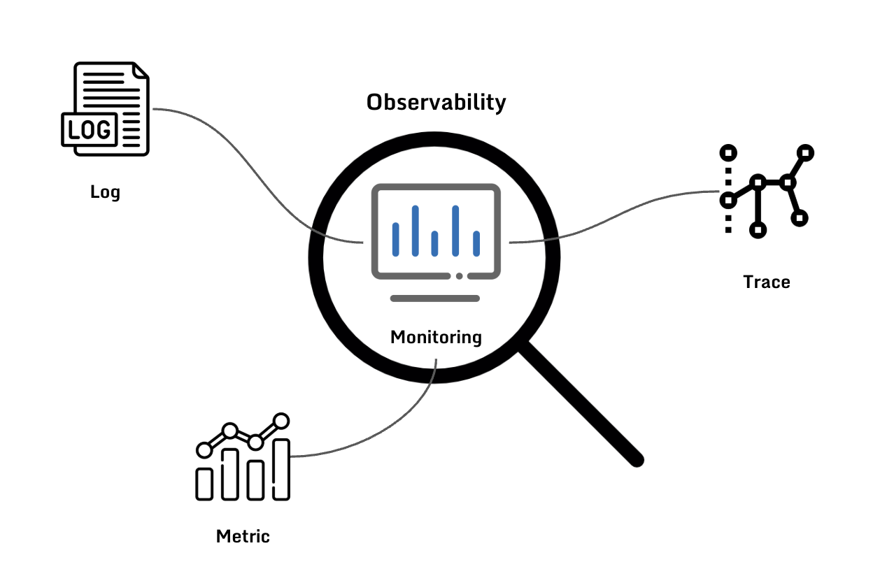 모니터링 보다 한 단게 더 나아가서, 단순히 숫자만 보는 것이 아니라 로그(기록), 매트릭(숫자 데이터), 트레이스(요청 흐름)등을 분석해서 문제가 왜 발생했는지 파악하는 행위 입니다. 주로 MSA와 같은 복잡한 분산 시스템에서 예상치 못한 문제를 해결하기 위해 구성됩니다. 또한, APM 대신 추적(trace) 이라고 부르며, 계측(instrumentation)과 텔레메트리(telemetry) 라는 용어를 범용적으로 사용함.