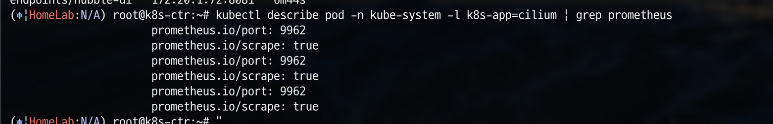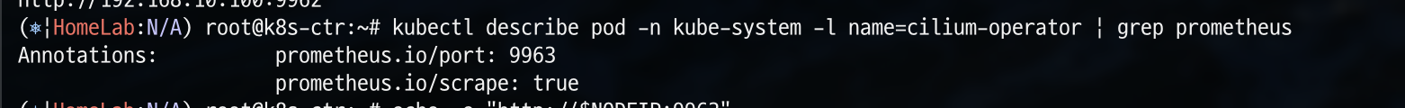 cilium-operator는 현재 9963 port로 prometheus가 설정되어 있는 것을 확인할 수 있습니다.
