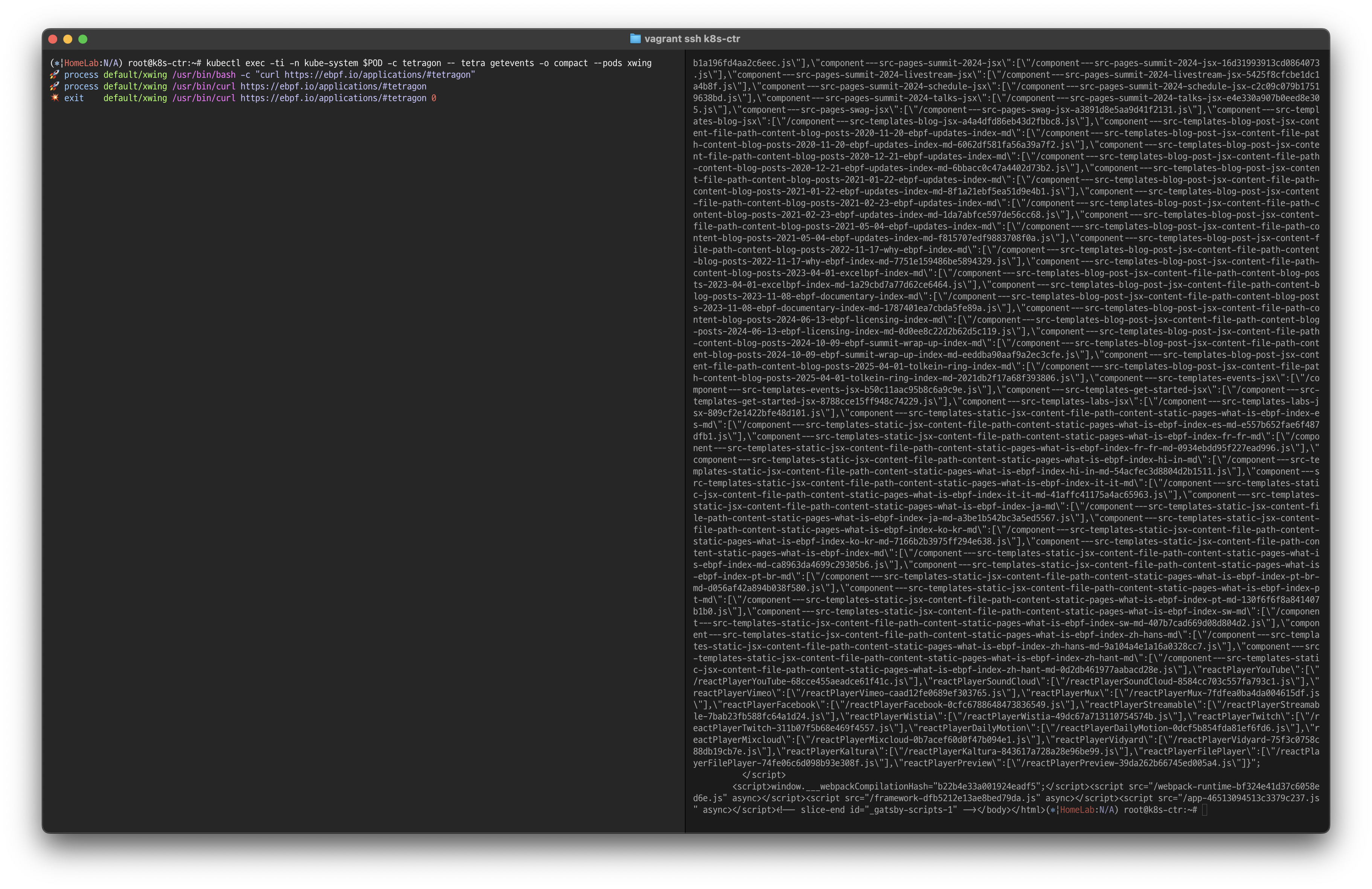각 줄마다 상세한 이벤트를 tetragon이 캡쳐하고 추적한 것을 알 수 있습니다.