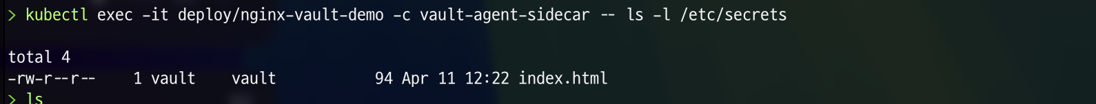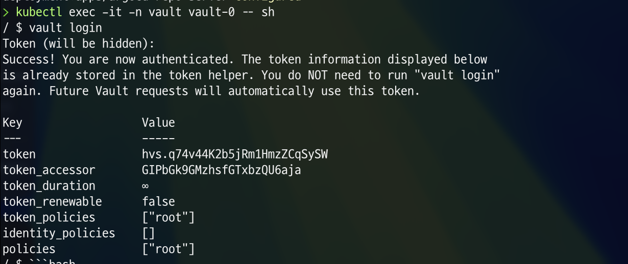 kubectl exec -it -n vault vault-0 -- sh